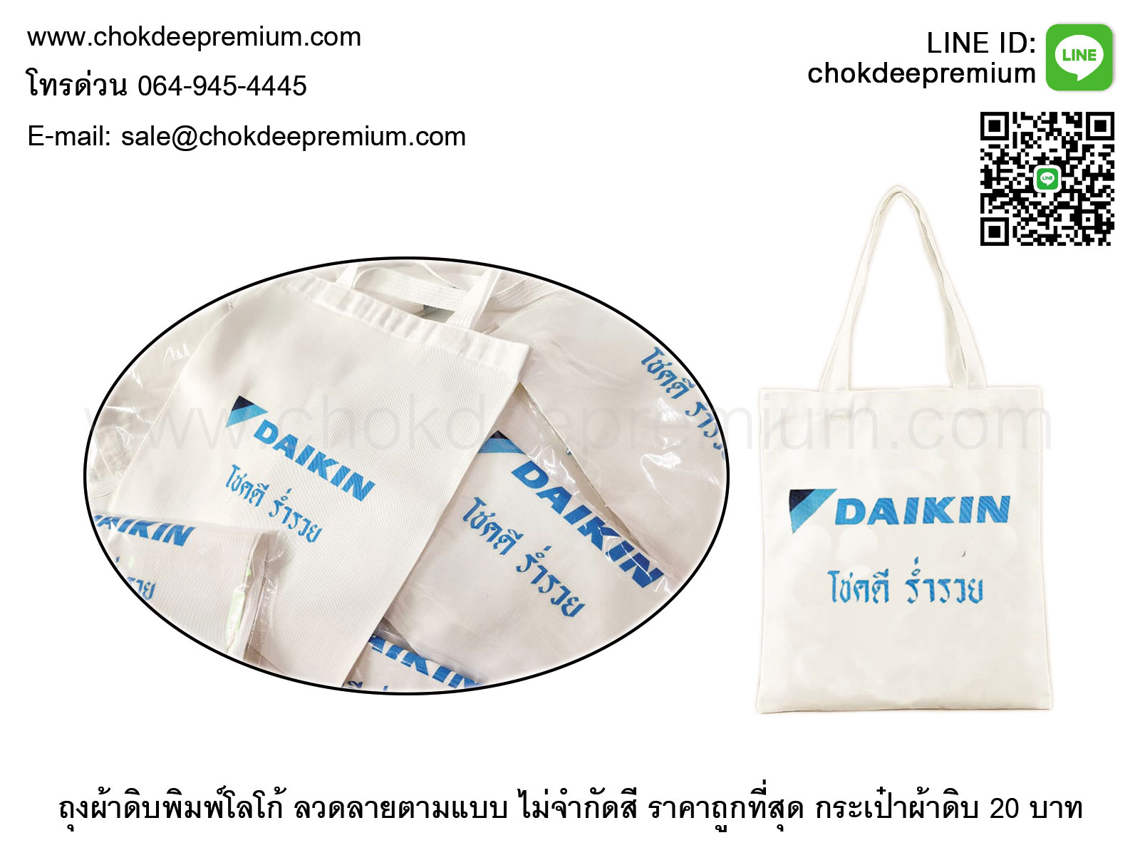 ถุงผ้าดิบพร้อมสกรีนโลโก้ ราคาถูกที่สุด รับทำกระเป๋าผ้าพรีเมี่ยม ลดโลกร้อน พิมพ์ลายไม่จำกัดสี หากคุณสนใจสินค้า สั่งผลิตถุงผ้าพร้อมสกรีนตามแบบ หรือต้องการสอบถามรายละเอียดของสินค้าเพิ่มเติม สามารถติดต่อเราได้ทุกวัน